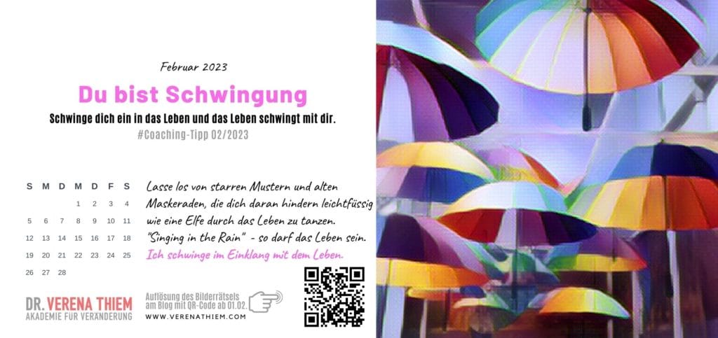 Lasse los von starren Mustern und alten Maskeraden, die dich daran hindern leichtfüssig wie eine Elfe durch das Leben zu tanzen. „Singing in the Rain“ – so darf das leben sein.
